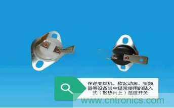 溫度開關(guān)的額定電流值(雙金屬片間流過電流值)一般有1A、2A、5A三個(gè)等級(jí)。溫度開關(guān)常見的封裝形式有塑封片狀、金屬殼長(zhǎng)條形等,其在電炒鍋、電餅鐺、電烤箱等電熱炊具中被廣泛使用;而在軟啟動(dòng)器、變頻器、逆變式焊機(jī)等工控設(shè)備中,溫度開關(guān)多被固定在大功率元件(晶閘管、IGBT)背后的鋁制散熱片上;此外溫度開關(guān)還會(huì)被植入電動(dòng)機(jī)、大容量變壓器繞組內(nèi),充當(dāng)超溫預(yù)警、溫度保護(hù)元件。