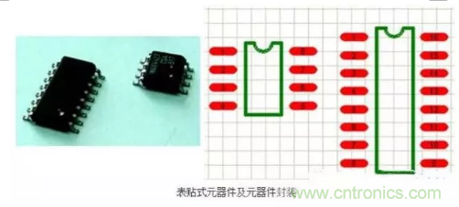 表貼式的元器件,指的是其焊盤只附著在電路板的頂層或底層,元器件的焊接是在裝配元器件的工作層面上進(jìn)行的,如圖所示。