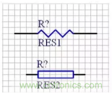 可以選用“RES1”、“RES2”、“RES3”、“RES4”中任何一個(gè),對(duì)應(yīng)的電阻封裝為AXIAL系列,比如“AXIAL-0.3”到“AXIAL-0.7”,其中0.4和0.7指電阻封裝的焊盤間距,一般用“AXIAL0.4”封裝。