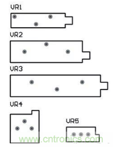 電位器的原理圖符號(hào)為“POT1”,“POT2”,對(duì)應(yīng)的電位器封裝為“VR-1”到“VR-5”。