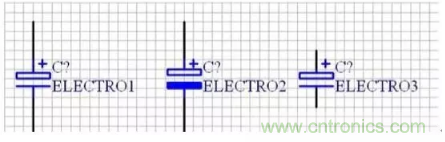 常用的原理圖符號(hào)為CAP,對(duì)應(yīng)的電容封裝為RAD系列,如“RAD-0.1”到“RAD-0.4”,其中0.1和0.4指電容大小,一般用“RAD0.2”。