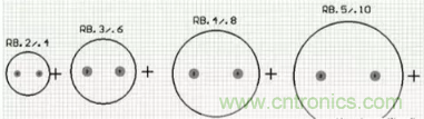 電解電容對(duì)應(yīng)的元器件封裝為RB系列,如“RB.1/.2”到“RB.5/1.0”,其中“.1/.2”分別指電容的焊盤間距和外形尺寸。
