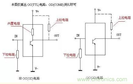當TTL電路驅(qū)動CMOS電路時,如果TTL電路輸出的高電平低于CMOS電路的最低高電平,這時就需要在TTL的輸出端接上拉電阻,以提高輸出高電平的值;OC門電路必須加上拉電阻,以提高輸出的高電平值。