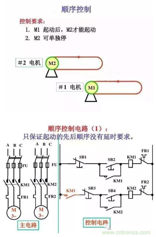 【導(dǎo)讀】在電氣控制電路里,順序控制也是應(yīng)用很廣泛的電氣控制電路,經(jīng)常被用在傳送帶,工業(yè)流水線,機(jī)械手等控制當(dāng)中,關(guān)于順序控制電路,簡(jiǎn)單一句話就說明原理:一個(gè)接一個(gè)的啟動(dòng),全部停止或者一個(gè)接一個(gè)的停止,今天我們就重點(diǎn)來看一下順序控制電路和具體實(shí)例。