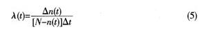 失效密度用來反映產(chǎn)品在全部工作時間失效的分布情況。產(chǎn)品工作到t時刻后,在單位時間內(nèi)失效的概率稱為失效率λ(t),可用下式表示: