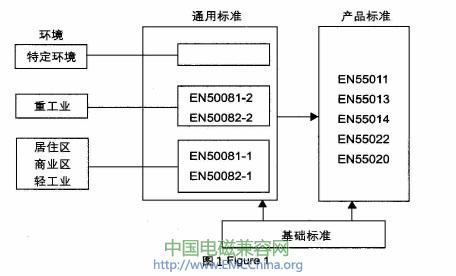 歐共體關(guān)于EMC的基本保護(hù)要求體現(xiàn)在其89/336/EEC指令中,所有進(jìn)人歐洲市場的電子電氣產(chǎn)品都必需符合該指令要求。該要求最終是通過貫徹歐洲標(biāo)準(zhǔn)(EN)來實(shí)現(xiàn)的,其標(biāo)準(zhǔn)體系如圖1所示,由歐洲標(biāo)準(zhǔn)化委員會(CENELEC)制定實(shí)施。