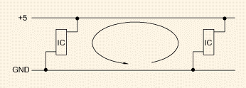 電流通過感應(yīng)進(jìn)入到電路環(huán)路,這些環(huán)路是封閉的,并具有變化的磁通量。電流的幅度與環(huán)的面積成正比。較大的環(huán)路包含有較多的磁通量,因而在電路中感應(yīng)出較強(qiáng)的電流。因此,必須減少環(huán)路面積。