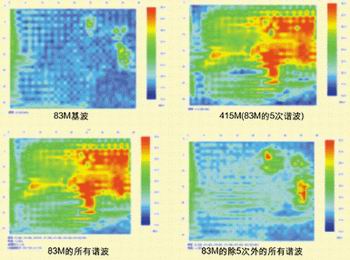圖3的各個空間分布圖,是通過指定頻率點來看該頻率點的空間腹部圖。通過在圖中最上面的頻譜圖中用×指定頻率點后得到的??梢灾付ㄒ粋€頻率點查看每個頻率點的空間分布,也可以指定多個頻率點,例如指定83M的所有諧波點,查看總的頻譜圖。
