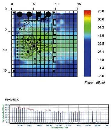 在任何新PCB的開發(fā)過程中,設(shè)計工程師都必須找出設(shè)計之外的輻射體或射頻泄漏,并對其進行描述和處理以通過一致性測試??赡艿妮椛潴w包括高速、大功率器件以及具有高密度或高復(fù)雜度的器件。掃描系統(tǒng)以疊加在Gerber文件上的形式顯示空間輻射特性,因此測試人員可以準(zhǔn)確地找出所有輻射問題的來源。設(shè)計工程師可以在采取了相應(yīng)的解決措施之后,對器件進行重新測試并立即量化出校正設(shè)計后的效果。