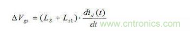 在諧振條件(ωL=1/ωC)下,柵極和源極電壓中生成的震蕩電壓遠(yuǎn)大于驅(qū)動(dòng)電壓。因諧振變化而產(chǎn)生的電壓振蕩與品質(zhì)因數(shù)成正比,Q(=ωL/R=1/ωCR)。當(dāng)MOSFET關(guān)閉時(shí),漏極寄生電感(LD+Ld1)、柵極-漏極電容Cgd和柵極引線電感Lg1網(wǎng)絡(luò)造成柵極振蕩電壓。如果柵極電阻(RG-ext.+Rg_int.)極小,則Q變大。另外,LS兩端的壓降和Ls1源極雜散電感在柵極-源極電壓中產(chǎn)生振蕩,可用表達(dá)式(1)表示。寄生振蕩可能造成柵源極擊穿、不良EMI、較大開關(guān)損耗、柵極控制失效,甚至可能造成MOSFET故障。