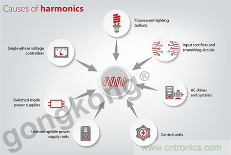 變頻器中使用的經(jīng)典整流器會產(chǎn)生高達(dá)50次(2.5 kHz)的諧波。諧波會在電網(wǎng)中產(chǎn)生相關(guān)的問題,但變頻器的普及,這個頻段已經(jīng)被EN 61000-3-4和3-2等標(biāo)準(zhǔn)所覆蓋。