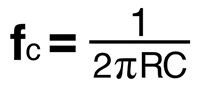 在該公式中,fc是濾波器的截止頻率,如圖2中的性能與頻率曲線圖以及如圖3等效電路的R(電阻)和C(電容)所示。