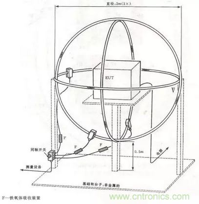 輻射發(fā)射測試時,測量天線接收到的騷擾強(qiáng)場包括兩個部分,一部分是EUT內(nèi)部的導(dǎo)線和電路直接通過機(jī)箱殼體的縫隙向外的輻射,稱殼體輻射,另一部分是由外接電纜引出的共模電流輻射。替代法測試的目的是僅僅測試EUT的殼體輻射,所以要求拆除所有可以拆卸的電纜,不能拆卸的電纜上要加鐵氧體磁環(huán),并放在不會影響測量結(jié)果的位置上。