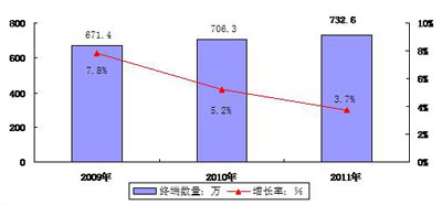圖2 2009-2011年中國便攜式電子學(xué)習(xí)產(chǎn)品市場銷售量及其發(fā)展速度預(yù)測