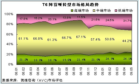 隨著彩電市場產(chǎn)品技術(shù)、功能的進(jìn)一步演化,以及不同地區(qū)、不同人群需求的多樣化,中國彩電市場向高端和低端二個(gè)市場分化趨勢更加明顯:趨優(yōu)市場,高端消費(fèi)群體更樂意花更多的錢買高品質(zhì)、高價(jià)值、多功能且充滿感情色彩的產(chǎn)品和服務(wù);趨低市場,低端消費(fèi)群體更在意能用相對(duì)低廉的價(jià)格購買可滿足針對(duì)性需求的高性價(jià)比產(chǎn)品和服務(wù),平板電視的啞鈴型市場格局也正逐步呈現(xiàn)出趨勢。