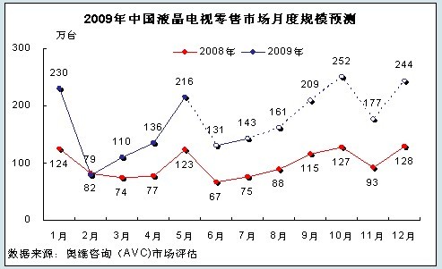 2009年LCD市場仍將呈現(xiàn)出中國市場特有的需求旺季分布顯著特征,預(yù)計(jì)2009四季度面板漲價(jià)和緊張供給局面將得到逐步緩解,加上各整機(jī)廠商2009年液晶年度銷售目標(biāo)的調(diào)整,行業(yè)上下游均對(duì)2009十一市場和元春市場寄予厚望。而十一市場和元春市場也將是2009年下半年的階段性制高點(diǎn),但由于受面板資源的影響,缺貨和提價(jià)可能導(dǎo)致高端大屏市場的競爭格局有所變化,同時(shí)LCD電視零售比重高速增長趨勢也可能被有所抑制。
