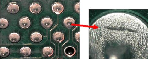 如上所述,若可見破裂底部、收縮孔不與鉛、焊盤或焊壁相接觸,1、2、3類都非缺陷。以下照片是取自Kester實(shí)驗(yàn)室的范例。