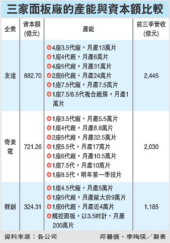 臺灣三家面板廠產(chǎn)能與資本額比較