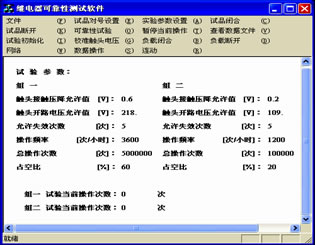 一是實(shí)時(shí)檢測(cè)與處理程序,包括了試驗(yàn)參數(shù)的設(shè)置,對(duì)試驗(yàn)狀態(tài)以及失效數(shù)據(jù)的保存,對(duì)失效數(shù)據(jù)進(jìn)行數(shù)學(xué)分析,打印報(bào)表等,檢測(cè)裝置記錄的失效數(shù)據(jù)有失效時(shí)間,失效試品號(hào)、觸點(diǎn)號(hào),觸點(diǎn)失效的類(lèi)型,失效時(shí)觸點(diǎn)電壓以及各觸點(diǎn)累計(jì)失效次數(shù)等;