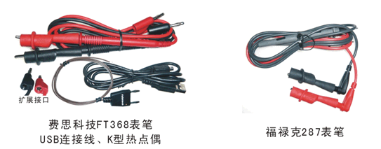 福祿克287的鱷魚夾手感好很多,比對手檔次高。費思FT368的表筆很實用和高檔,可以在其擴展接口上插測試線。另外費思FT368的K型熱點偶很正點,價值不菲。