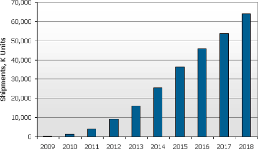 - 3D TV將由2009年的20萬臺(tái)成長(zhǎng)到2018年的640萬臺(tái)