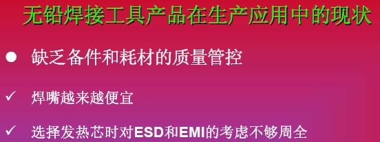 中國的無鉛焊接工藝,在過去十年里面得到了長足的發(fā)展,在目前這個階段,無鉛焊接工具這個行業(yè)的背景到底是怎樣的狀況,它的產(chǎn)品創(chuàng)新究竟要怎樣來進行,以及我們今后在無鉛焊接工具這個行業(yè)里面,怎樣去進一步發(fā)展和展望?