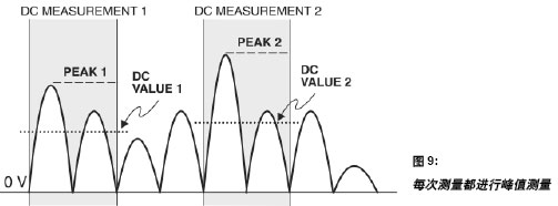 取得一個讀數(shù)的一種替代方案是設(shè)置為一組讀數(shù),在一組直流讀數(shù)中只返回一個峰值測量結(jié)果,如圖10 所示。