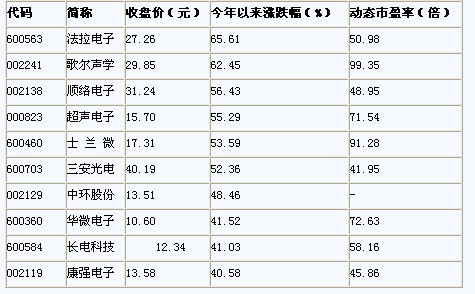 二級市場的表現(xiàn)一向來都是先于上市公司的經(jīng)營情況的。今年以來許多電子類公司就出現(xiàn)了不同程度的上漲,該行業(yè)的今年以來算術(shù)平均漲幅達20.6%。其中今年以來漲幅最大的是法拉電子,上漲達65.61%。其次是歌爾聲學,上漲幅度達62.45%。特別注意的是隨著一季度業(yè)績的公布,這些大幅上漲的個股,由于凈利潤的同時上漲,PE也并未明顯增高。