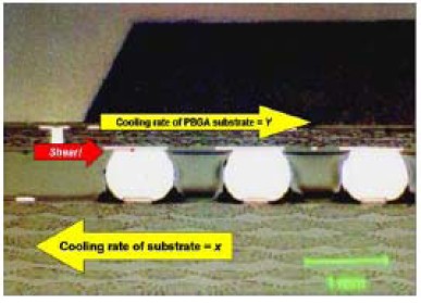 圖7熱沖擊下BGA剪切應(yīng)力的產(chǎn)生