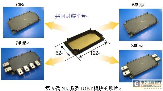 第6代NX系列IGBT模塊產(chǎn)品豐富,包括1200V和1700V兩個(gè)電壓等級(jí),額定電流從35A到1000A,分別有CIB (Converter Inverter Brake)、七單元、六單元、二單元和一單元模塊,共5種電路拓?fù)?。全系列產(chǎn)品采用同一封裝平臺(tái)從而降低了模塊的制造成本,使得NX系列IGBT模塊的性價(jià)比具有不同尋常的競(jìng)爭(zhēng)力。