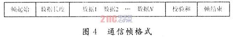 單片機(jī)與PC端的數(shù)據(jù)通信需要設(shè)計(jì)一個(gè)通信協(xié)議,采用同步通信方式進(jìn)行。將通信協(xié)議分成命令幀、應(yīng)答幀和數(shù)據(jù)幀三種格式。每種幀都包含有起始字節(jié)、數(shù)據(jù)長(zhǎng)度、校驗(yàn)字節(jié)和幀結(jié)束字節(jié)。具體格式如圖4所示。