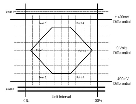 本次測試將主要驗(yàn)證產(chǎn)品上兩個(gè)USB高速主機(jī)接口的眼圖。對(duì)于USB2.0物理層的眼圖測試,USB IF在USB2.0 SPEC中有著明確的眼圖模板定義如下:
