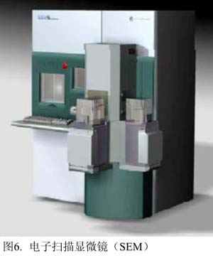 首先,它擺脫了照明光源,檢測結(jié)果不會(huì)受到類似變色、厚度不均等各種層面所帶來的物理因素的影響;其次,電子束的分辨率極高。因?yàn)樗臋z測單位是電子,電子要比微波以及任何尺寸的顆?;蛉毕荻家〉枚?;再次,電子是帶有電性的電荷,所以它可以被用于分析材料的電性或電組織成分,這被稱作電壓對比度圖像,經(jīng)常被用于檢測類似開閉鎖等電子電路缺陷和通孔蝕刻不足等材料缺陷。電子束檢測設(shè)備一般有KLA-Tencor和HMI公司的Escan系列(如圖5所示)。