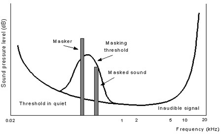 它們使用了三大關(guān)鍵技術(shù)。當要剔除低于最小聽覺閾值的聲音時,使用頻率屏蔽技術(shù)。當一個大幅度信號非常接近另一個較低幅度的信號時,使用幅度屏蔽技術(shù)。從而小信號被大信號屏蔽,因此小信號將不被編碼。最后,當不同音調(diào)在時間上非常接近時,使用時間屏蔽技術(shù)。從而可屏蔽掉在一個較柔和聲音前或后的高音,并把它丟棄掉。