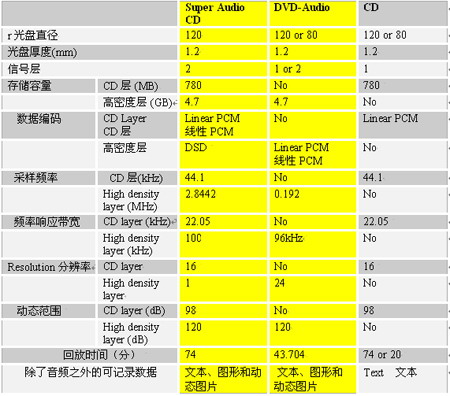 DVD-Audio提供了空前的高質(zhì)量音頻回放潛力,不過,DVD-Audio并不是唯一的高質(zhì)量音頻標準。Sony和Philips也已經(jīng)合作開發(fā)了一個稱為DirectStreamDigital(DSD)的競爭標準。1999年在日本公布的SuperAudioCD)與PCM格式CD和針對數(shù)字音頻的DVD標準不兼容。?(SACD