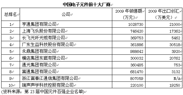 第23屆中國元件百強企業(yè)名單于2010年6月22日公布。從本次百強企業(yè)的評選結果,以及中國電子元件行業(yè)協(xié)會(下簡稱中電元協(xié))公布的數(shù)據(jù)上可以看出,在經(jīng)歷了全球經(jīng)濟危機之后,中國電子元件行業(yè)正在穩(wěn)步復蘇,眾多元件企業(yè)正在積極尋求在“后危機時代”的生存和發(fā)展之道。