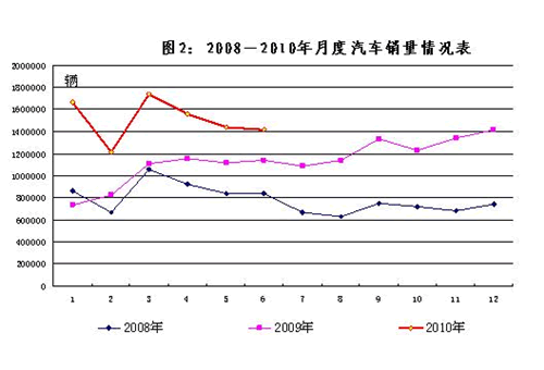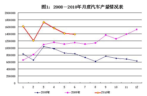 2010年上半年,汽車(chē)產(chǎn)銷市場(chǎng)增速自3月以來(lái)呈逐月回落態(tài)勢(shì),但總體保持較高增長(zhǎng)勢(shì)頭;汽車(chē)行業(yè)整體經(jīng)濟(jì)效益保持良好的發(fā)展態(tài)勢(shì)。