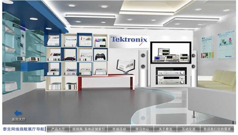 網上展廳是一種全新的以網絡為依托的互動營銷平臺,整合了文字、圖片、音頻、視頻和網絡等技術,同時3D立體畫面可讓受眾如身臨其境,可直觀地感受產品和品牌本身。泰克公司秉承“服務創(chuàng)新永無止境”的理念,希望借助這種新型的互動虛擬營銷平臺,結合遍布全國的零售實體店,通過“虛實”結合的全新營銷服務模式為中國工程師帶來顛覆式的絕佳采購體驗,并實現(xiàn)泰克品牌的展示。將現(xiàn)實中的公司產品展示廳搬到網站上并非泰克公司首創(chuàng),但在國際國內同行中無疑是第一個“吃螃蟹”的人。
