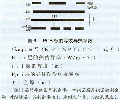 評價PCB的散熱能力,就需要對由導(dǎo)熱系數(shù)不同的各種材料構(gòu)成的復(fù)合材料一一PCB用絕緣基板的等效導(dǎo)熱系數(shù)(九eq)進(jìn)行計算。PCB板的等效導(dǎo)熱系數(shù)見圖6所示。