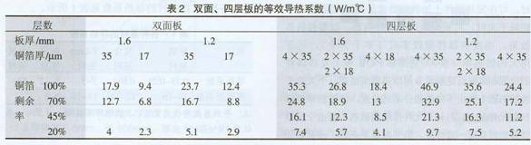 從表2我們可以看出板厚度越小,銅箔越厚,銅箔剩余率越高,層數(shù)越多,其等效導(dǎo)熱系數(shù)越大,PCB板的導(dǎo)(散)熱效果越好。