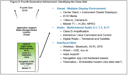圖9所示為一線供應(yīng)商將來如何需要在第四代汽車信息娛樂架構(gòu)中尋找增加價值的機會,以保持競爭優(yōu)勢。