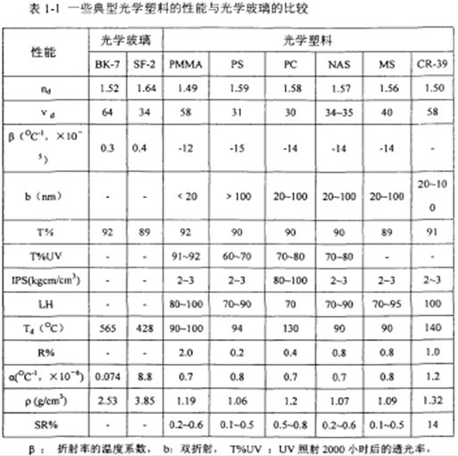 與傳統(tǒng)無機(jī)光學(xué)材料相比,盡管光學(xué)高分子材料的耐熱性、耐候性、耐磨性、耐溶劑性、抗吸濕性及光學(xué)均一性(雙折射、光學(xué)畸變)較差,折射率、色散范圍較窄,熱膨脹系數(shù)較大,但是聚合物光學(xué)材料具有密度小、耐沖擊、成本低、加工成型容易等優(yōu)點(diǎn),近年來得到了廣泛的應(yīng)用。常用光學(xué)高分子材料有烯丙基二甘醇二碳酸酯等幾種熱固性樹脂和聚甲基丙烯酸甲酯、聚苯乙烯、聚碳酸酯、聚4-甲基戊烯-1、苯乙烯-丙烯腈共聚物等熱塑性光學(xué)樹脂。表1-1列出了一些常用光學(xué)高分子材料的特性。[page]