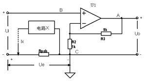 以圖1所示電路為例,U1、R3、R2組成同相放大器,設(shè)計(jì)期望該放大器能夠?qū)⑤斎胄盘?hào)Ui放大10倍,Uo是放大器的輸出電壓。由于PCB布局布線受到約束,Ui的“-”輸入端子跟電阻R2的C端之間有一段導(dǎo)線Rpcb。而PCB上可能存在“電路X”引入地回流Ix流過(guò)導(dǎo)線電阻Rpcb。受“電路X”地回流Ix的影響,導(dǎo)線Rpcb兩端會(huì)有電壓差Ue,為了確定Ue對(duì)被測(cè)信號(hào)的影響,需要測(cè)量Ue的大小。