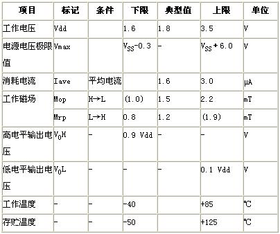圖2為AS系列的外觀形狀。除了業(yè)界標準的SOT23(2.9×2.8×1.2mm),SON4(2.0×2.1×0.6mm)之外,加上超小型的XSON(1.2×1.2×0.4mm),共3種規(guī)格,可根據(jù)實際空間組合選擇。表1是AS系列的代表產(chǎn)品AS-M15TA-R的規(guī)格一覽表,其中最重要的是工作磁場。工作磁場是指輸出信號改變的磁場,為了防止跳躍現(xiàn)象(“高”和“低”在閾值附近反復出現(xiàn)的現(xiàn)象),具有磁滯區(qū)間,如圖3所示。除了標準特性外,還具有靈敏度可變,工作電壓的擴大可變等特性。詳細的規(guī)格標準就不在此詳述。圖4是為了減少消耗電流進行的抽樣測定的說明簡圖。