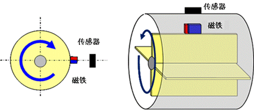 通過讓傳感器靠近和遠離磁鐵來控制電路的方法,較為普遍的就是使用在蓋或門的開關(guān)部分,比較容易想象。若在磁鐵上安裝齒輪或羽毛,還能夠作為液體或氣體的流量計使用(如圖6)。另外還可以用來檢測可脫卸的零件在使用時的安裝位置是否正確。
