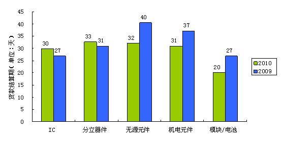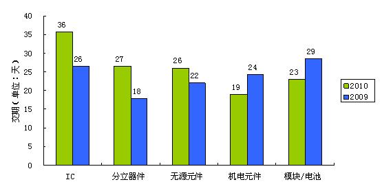 本次調(diào)查的結(jié)果印證了2010年電子行業(yè)所面臨的“缺貨”困境——2010年電子系統(tǒng)制造商與設(shè)計(jì)公司面臨的最普遍的采購(gòu)風(fēng)險(xiǎn)是無(wú)法供貨,43.6%的公司面臨著供應(yīng)商無(wú)法供貨的困擾。與2009年的調(diào)查做對(duì)比,2010年IC、分立器件、無(wú)源元件、機(jī)電元件、模塊/電池五大類(lèi)物料價(jià)格有不同幅度增長(zhǎng),其中IC與分立器件漲幅最大,機(jī)電元件、模塊/電池漲幅最??;交貨期方面,IC、分立器件、無(wú)源元件交貨期都有所延長(zhǎng),而機(jī)電元件、模塊/電池交貨期分別縮短了5天和6天;貨款結(jié)算期方面,IC、分立器件貨款結(jié)算期均有所延長(zhǎng),無(wú)源元件、機(jī)電元件、模塊/電池的貨款結(jié)算期都縮短了。