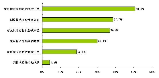 通過(guò)對(duì)替代方式的調(diào)查發(fā)現(xiàn),不同品牌物料之間的替換成為2010年使用替代物料的最主要方式,而2009年的調(diào)查結(jié)果中廠商新老產(chǎn)品替換占據(jù)主流。替代方式側(cè)重點(diǎn)的變化也反映了供應(yīng)鏈中物料品牌替換比較活躍,這為新的品牌供應(yīng)商切入市場(chǎng)提供了機(jī)會(huì)。那么工程師如何獲得品牌替代信息呢?通過(guò)調(diào)查發(fā)現(xiàn),使用在線工具是尋找物料品牌替代信息成為新寵。在線工具包括供應(yīng)商網(wǎng)站的選型工具、目錄分銷(xiāo)商的搜索工具、供應(yīng)商替代搜索工具。此外,技術(shù)文章也是影響工程師選擇的重要方式,而技術(shù)文章恰恰是國(guó)內(nèi)元器件供應(yīng)商的短板。
