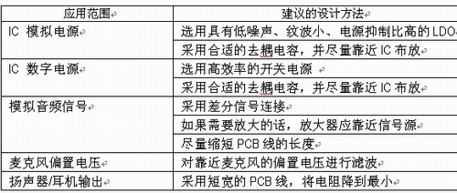 在便攜式音頻系統(tǒng)中,主電源通常是電池。由于系統(tǒng)其它部分(包括無(wú)線(xiàn)收發(fā)器、存儲(chǔ)器和顯示器等)造成的瞬態(tài)變化,使得電池的噪聲非常大。因此在給音頻編解碼器或DAC以及其它音頻信號(hào)路徑上的器件(如放大器等)提供模擬電源時(shí),最好不要直接使用電池電壓,而是使用具有良好電源抑制比(PSRR)和低輸出噪聲的低壓降穩(wěn)壓器(LDO)。這樣可確保模擬電路有‘潔凈’的工作電源。需要仔細(xì)選擇LDO,確保其額定電流能足以滿(mǎn)足所供電電路的需求。在模擬電源端去耦電容的使用方法也很重要。大的去耦電容(10µF 以上)非常適合電源濾波。數(shù)值較小的去耦電容(1µF以下)在提供IC所需的快速瞬變電流時(shí)也是必需的。去耦電容必須盡可能靠近模擬電源引腳放置,并在電容和電源與地的連接中盡可能避免出現(xiàn)PCB過(guò)孔。相對(duì)于比較大的電容來(lái)說(shuō),較小的去耦電容要更靠近IC引腳擺放,因?yàn)榇?lián)電阻對(duì)較小電容的響應(yīng)時(shí)間影響較為顯著。