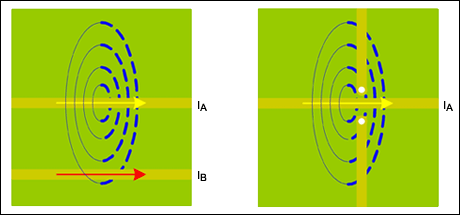 式中,YB是向電路B注入的誤差電壓,IA是在電路A作用的電流1。LM對電路間距、電感環(huán)路面積(即磁通量)以及環(huán)路方向非常敏感。因此,緊湊的電路布局和降低耦合之間的最佳平衡是正確排列所有電感的方向。