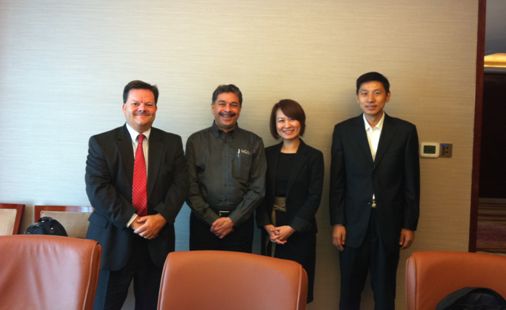 照片說明:(從左到右)Mark Burr-Lonnon( Mouser歐亞區(qū)副總裁), Conrad Fernandes(LeCroy公司亞太區(qū)副總裁),Daphne( Mouser 亞太區(qū)市場與業(yè)務(wù)拓展總監(jiān)),管立虹(LeCroy公司亞太區(qū)目錄銷售經(jīng)理)
